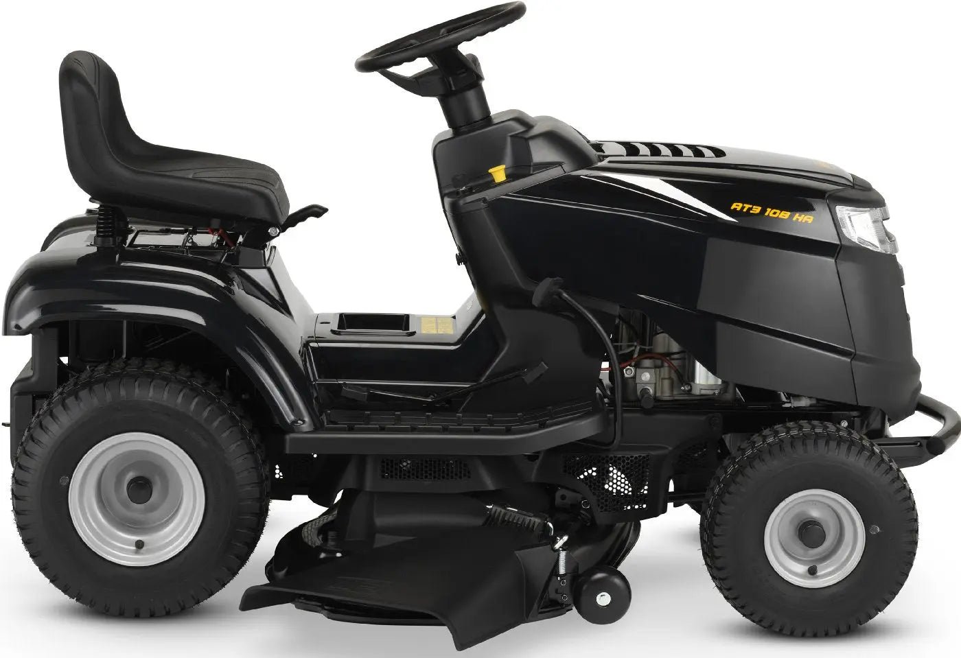 Die 108 cm Schnittbreite ermöglicht schnelles Arbeiten auf großen Flächen. Das Gerät arbeitet mit Seitenauswurf und verfügt zusätzlich über ein Mulchkit im Lieferumfang, wodurch das Schnittgut fein zerkleinert und als natürlicher Dünger auf dem Rasen verteilt werden kann.