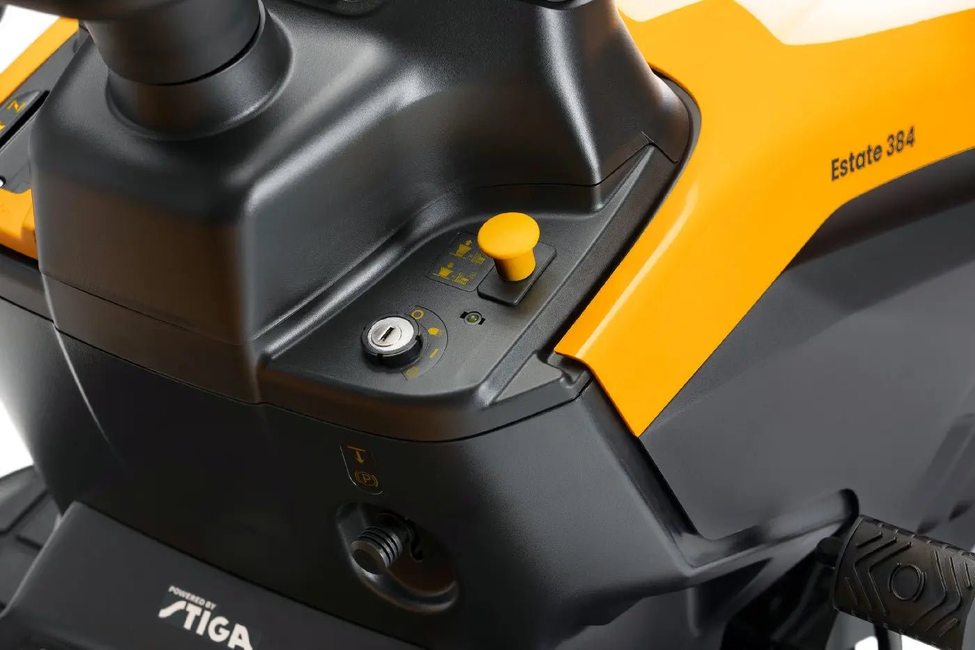 Der STIGA Estate 384 Rasentraktor bietet eine optimale Kombination aus Leistung, Komfort und Vielseitigkeit für die Pflege mittelgroßer Rasenflächen. Der zuverlässige 4-Takt Benzinmotor mit 432 cm³ sorgt für eine konstante Leistung und ein sauberes Schnittbild.
