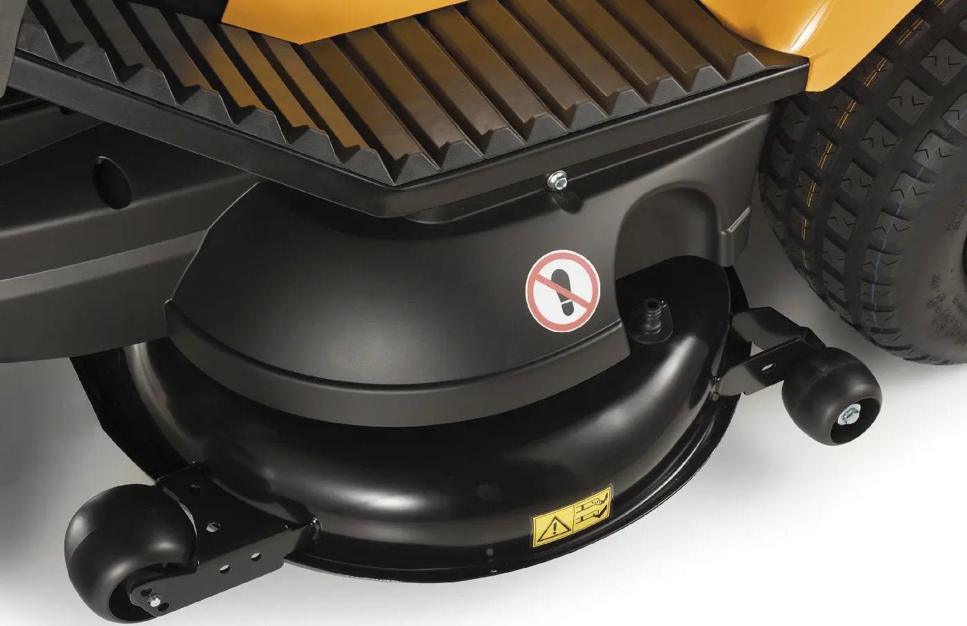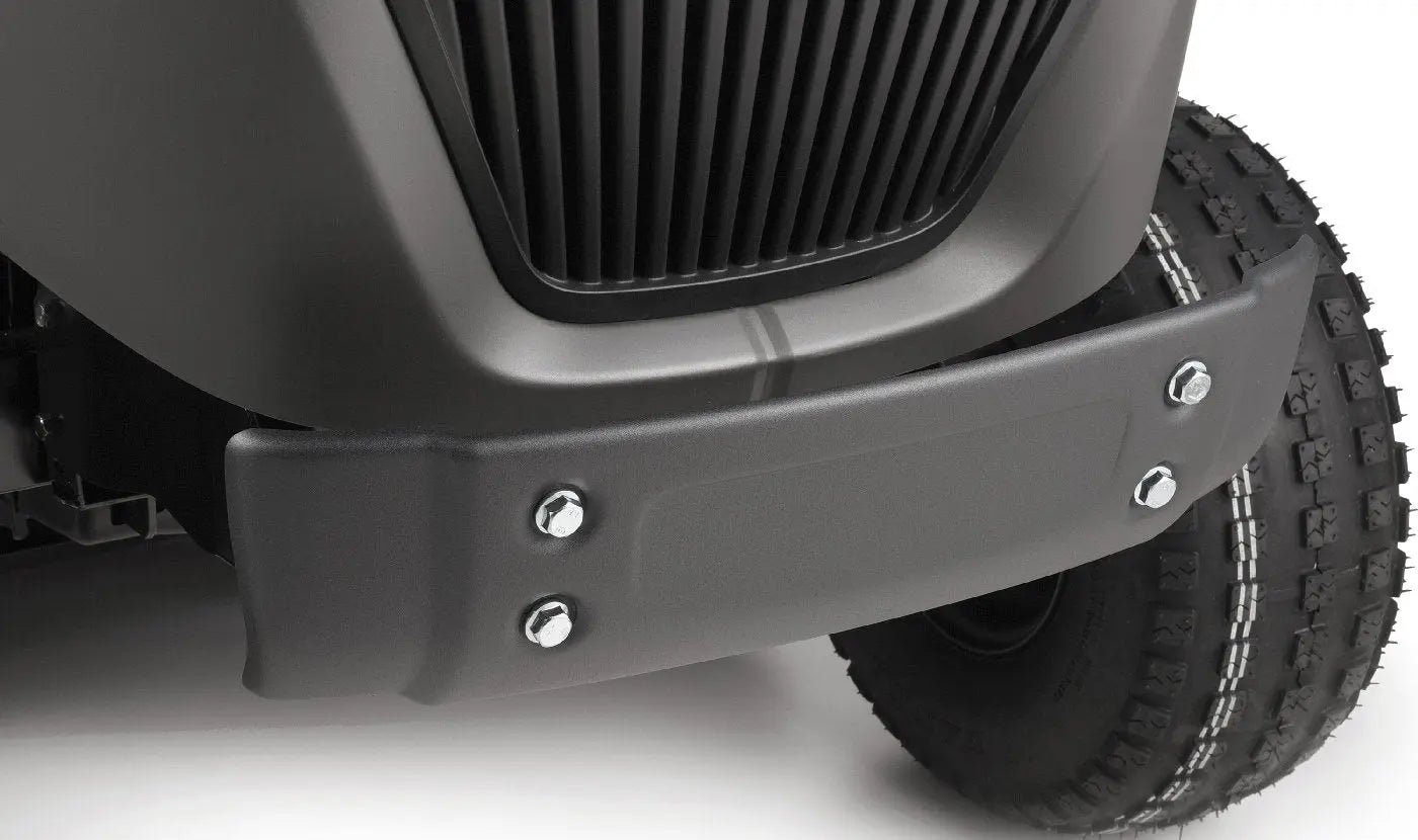 Die pendelnde Vorderachse sowie die Führungsräder am Mähwerk unterstützen eine gleichmäßige Bodenanpassung und verhindern ein Aufsetzen auf unebenem Gelände.