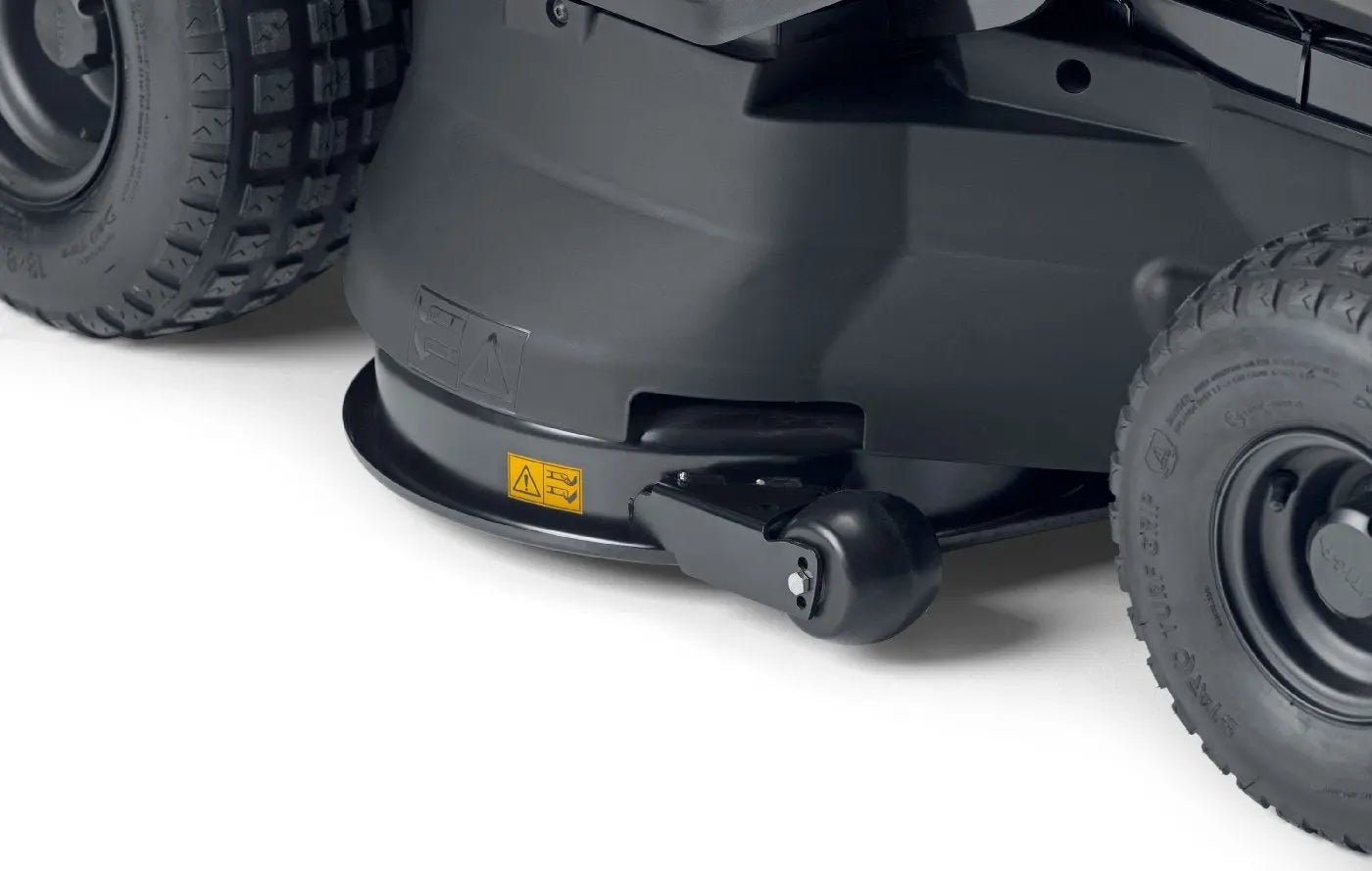 Das hydrostatische Getriebe sorgt für eine stufenlose Geschwindigkeitsregelung und komfortables Fahren. Die schwenkbare Vorderachse verbessert die Bodenanpassung und sorgt für gleichmäßige Ergebnisse auch auf unebenem Gelände.